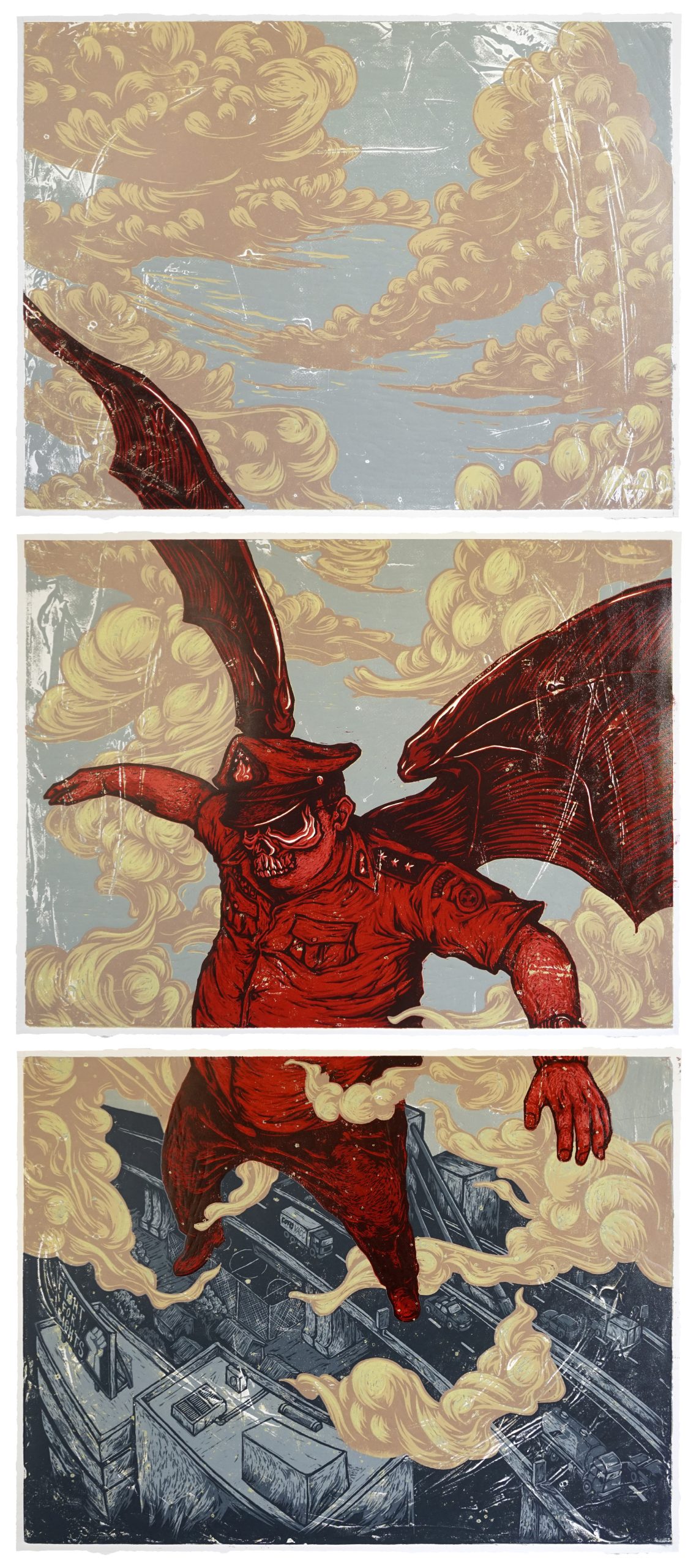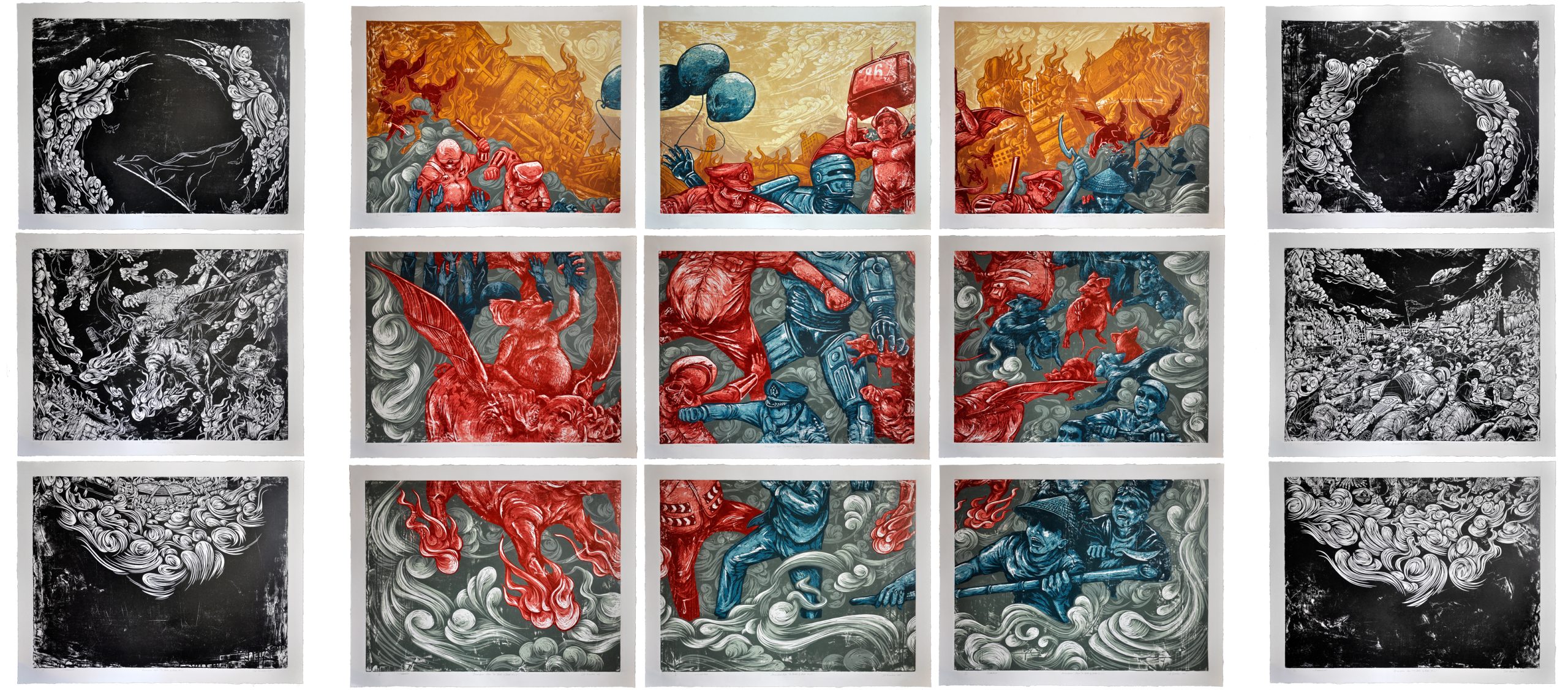Sigit’s works can represent one of the sociopolitical problems that are happening now, to be a critic of the tension between law enforcement institutions and society. To accommodate his ideas, Sigit primarily uses woodcut printmaking techniques, and historically, it was used as a propaganda medium to influence the audience’s perception of social and political issues. With a distinctive visual character, he made printmaking as an art medium to communicate simultaneously with a large number of people.