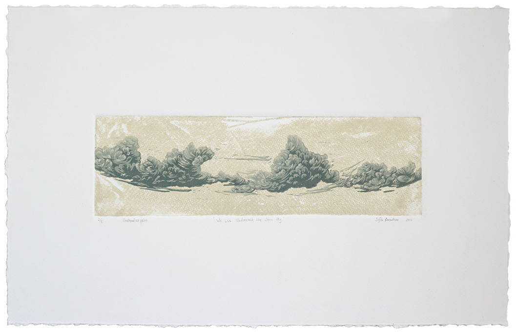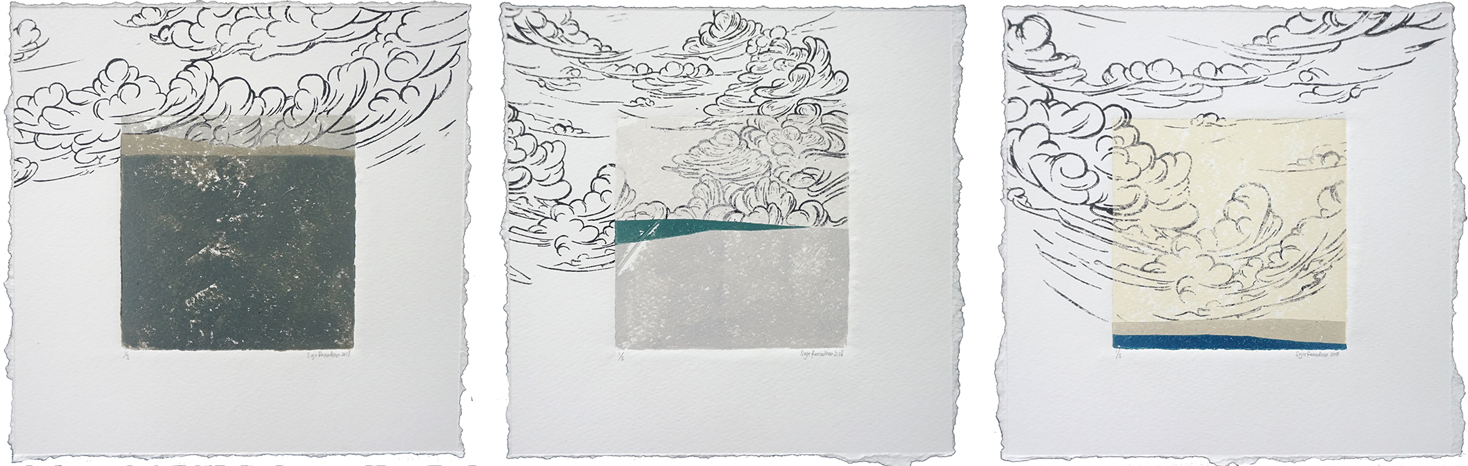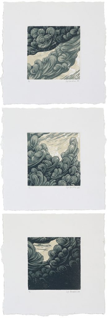 Awareness of the medium’s significances continues to be observed through the exploration of the print matrix which has an opportunity to produce diverse visual effects. In this series of works, the printing technique is further interpreted as a meditative process for contemplating how greater forms of power operate in the universe in great detail and sometimes beyond reason. Through the view of the sky, Sigit tries to interact with the personal himself as a form of reflection while trying to get closer to the almighty form of power, the creator of the sky with all its contents.